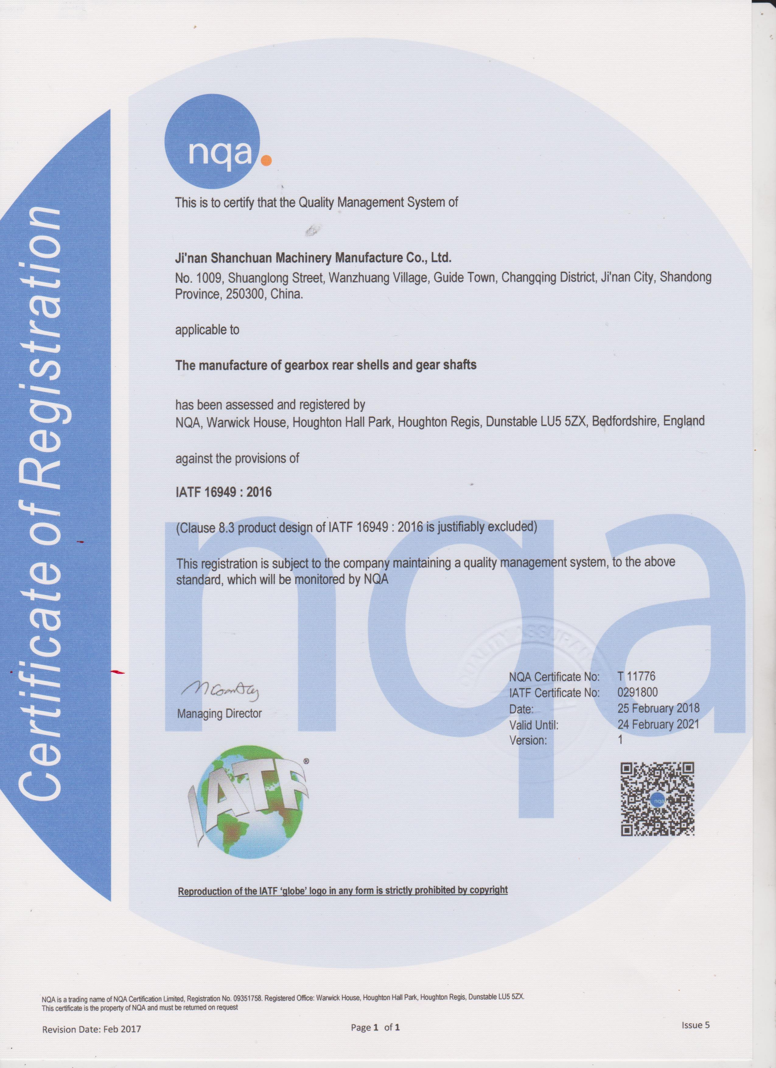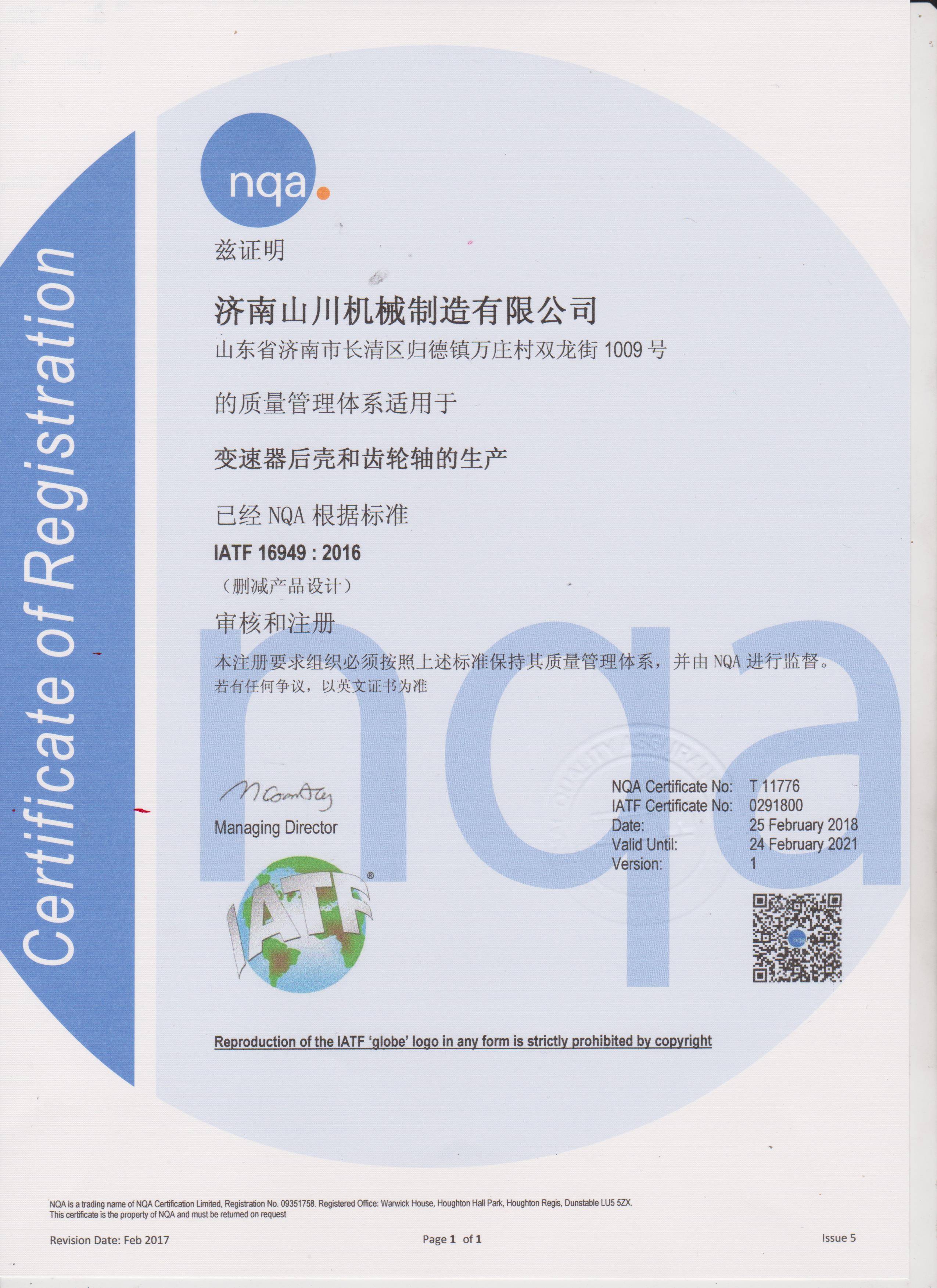 2025年12月取(qu)得IATF16949證書;
